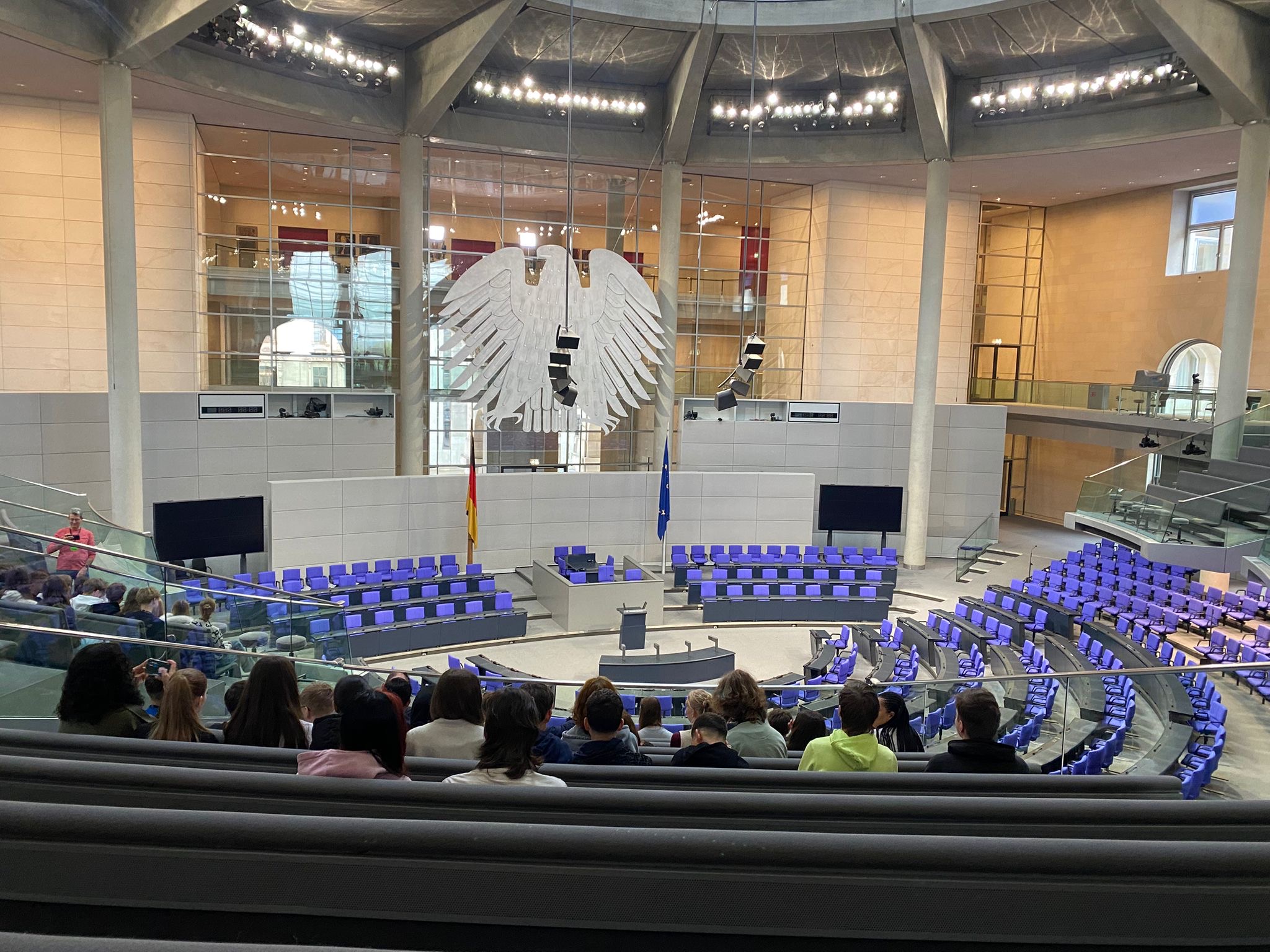 Ein besonderes Highlight unseres Besuchs war der Aufenthalt im Deutschen Bundestag im Reichstagsgebäude. Dort nahmen wir auf der Besuchertribüne des Plenarsaals Platz und erhielten im Rahmen einer Informationsveranstaltung interessante Einblicke in die Arbeit des Parlaments sowie in die Geschichte des Gebäudes.