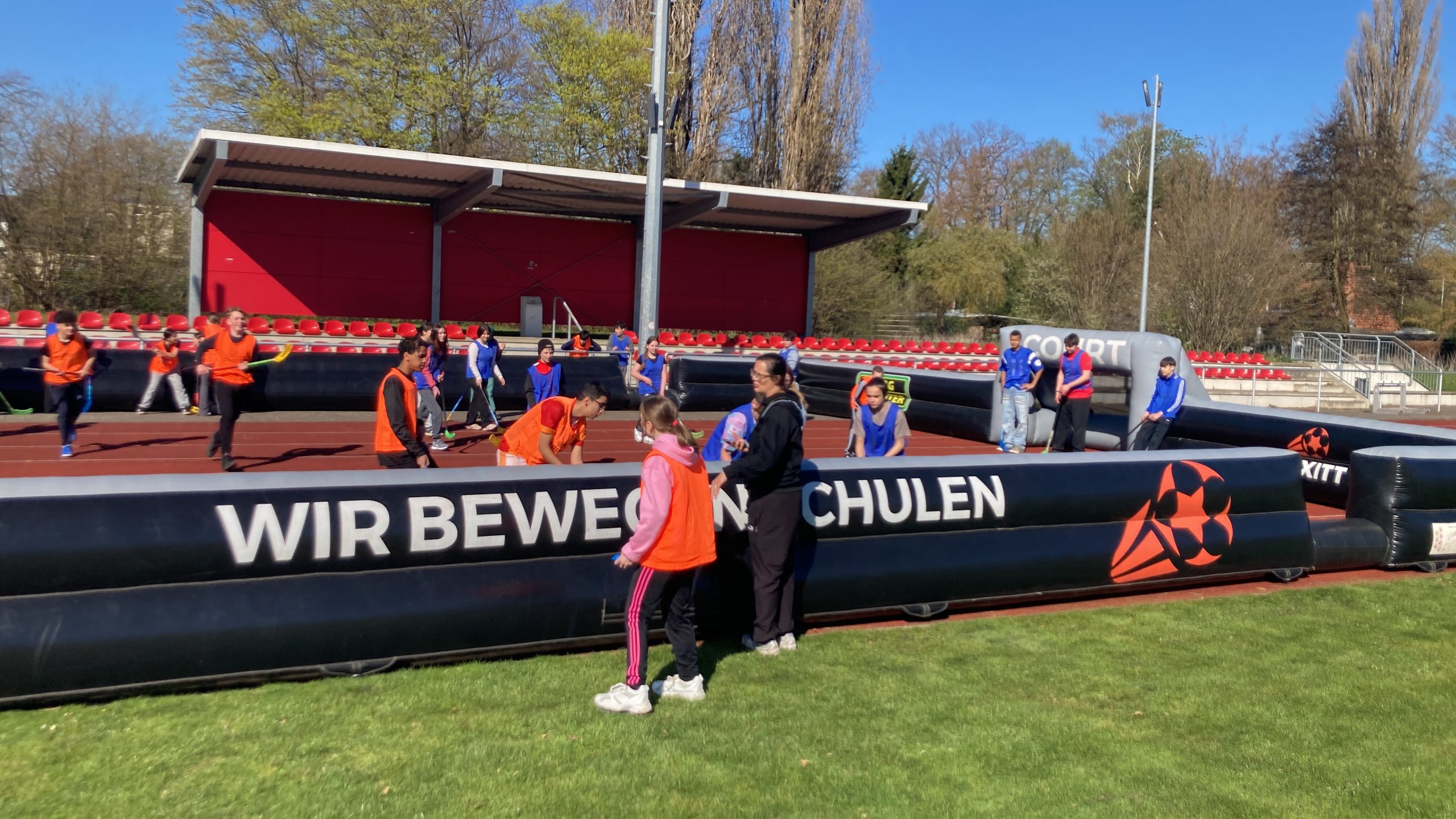 Heute fand das Trixitt Sportfest an unserer Schule statt. An sechs abwechslungsreichen Stationen konnten die Schülerinnen und Schüler ihr Können, ihre Ausdauer und ihren Teamgeist unter Beweis stellen. Zu den Stationen gehörten unter anderem ein Menschenkicker, ein Hindernisparcours, ein Zweifelderballspielfeld und Känguru Volltreffer.