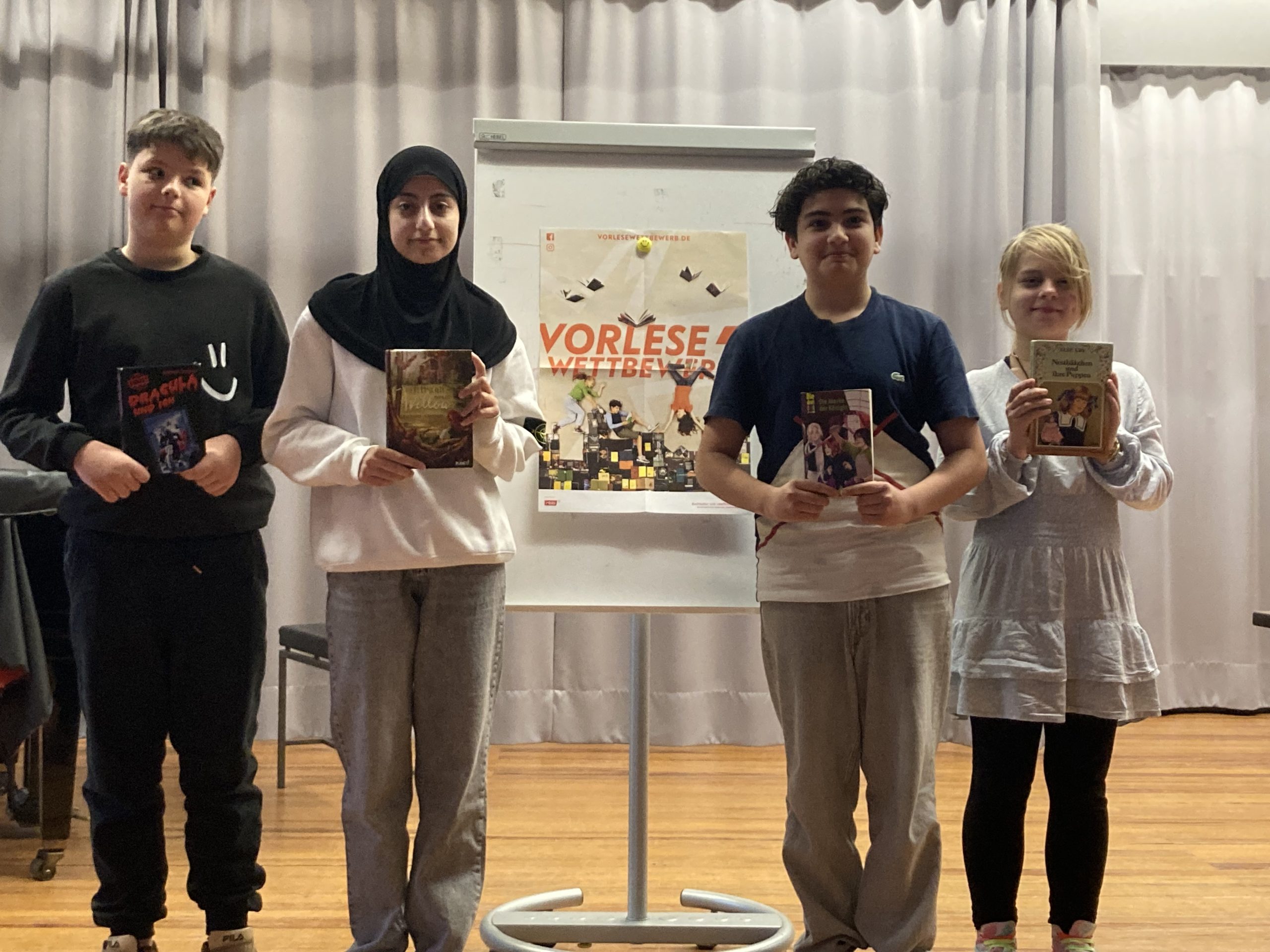 Am 4. Dezember 2025 fand in der Aula unserer Schule der Vorlesewettbewerb des sechsten Jahrgangs statt. Um 8 Uhr versammelten sich alle Klassen, um die teilnehmenden Schülerinnen und Schüler als Publikum zu unterstützen. Die Jury bestand aus Frau Mohaupt, Frau Teschke und Frau Yildirim.