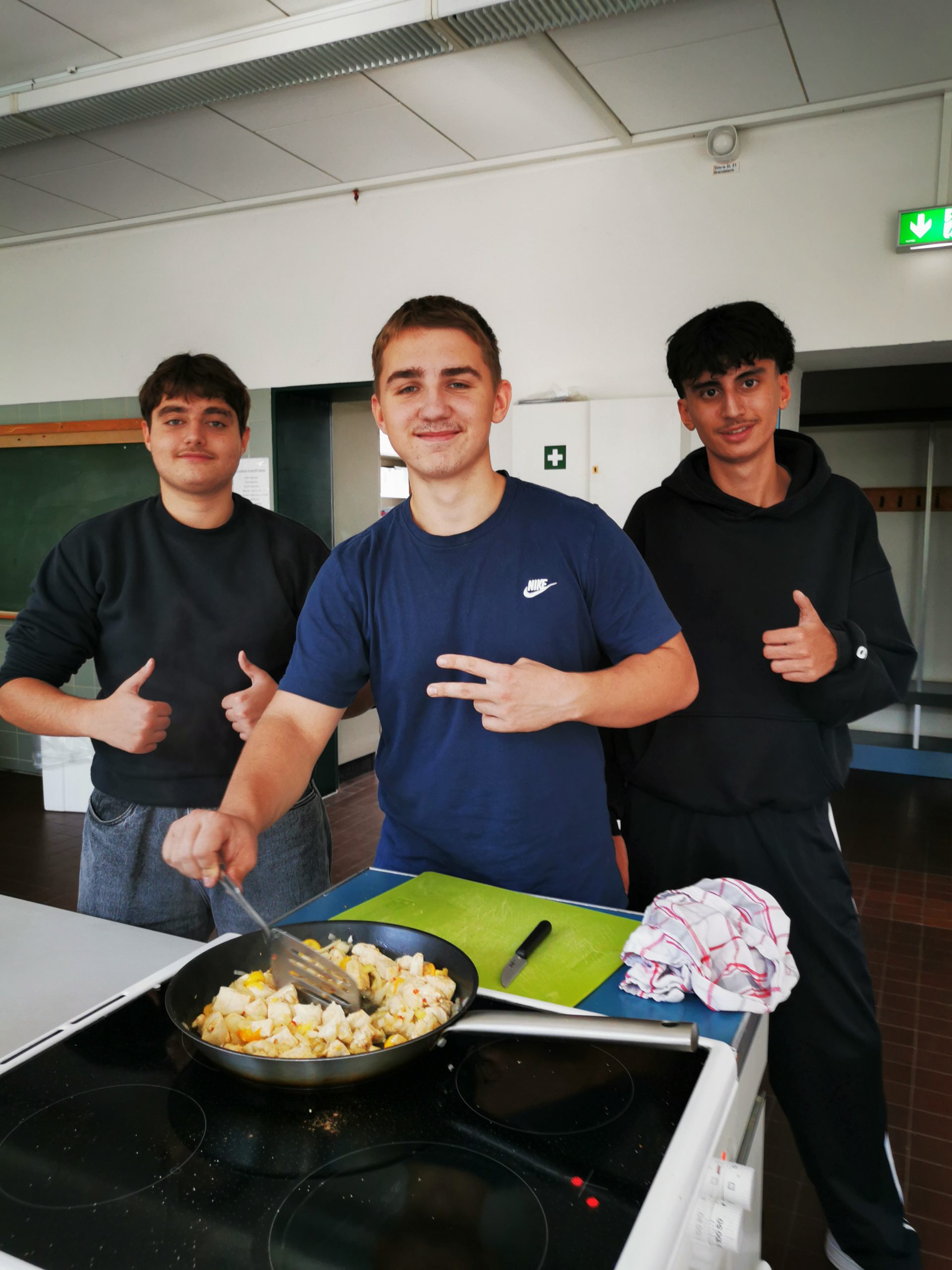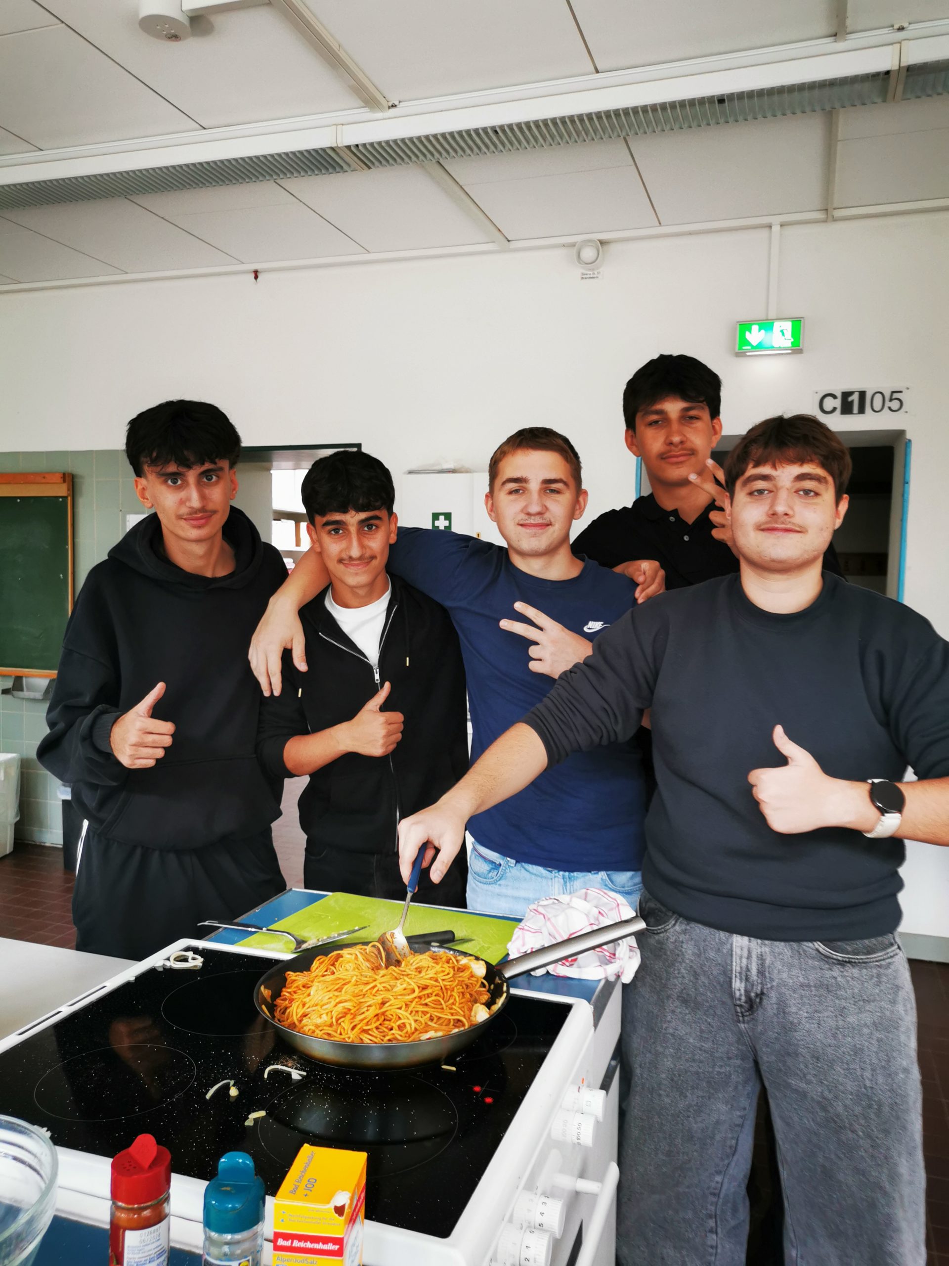 Wir kaufen zusammen ein, lernen die Zutaten kennen, erstellen die Rezepte. Wir erproben diese Rezepte in der Küche.